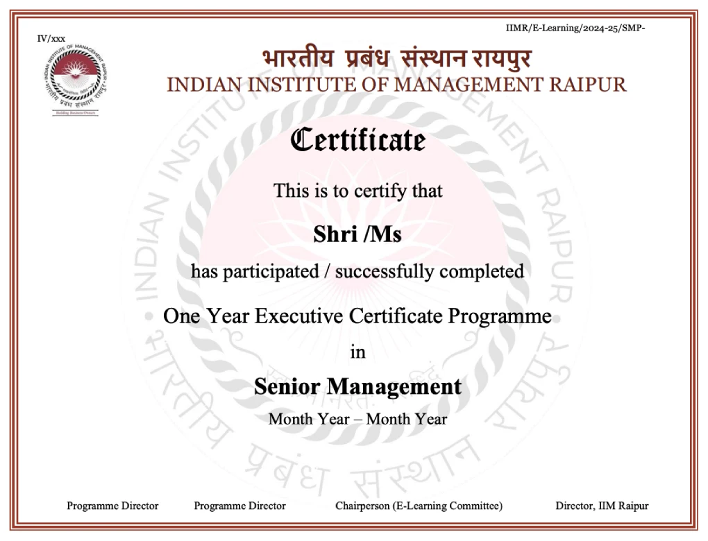 Disclaimer: *All certificate images are for illustrative purposes only and may be subject to change at the discretion of IIM Raipur.
